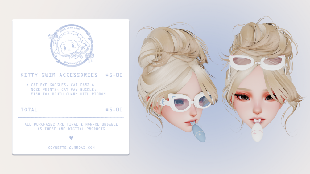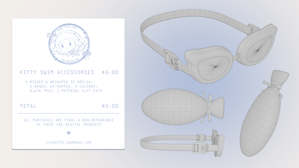 ˗ˏˋ kitty swim accessories﹒VRChat asset﹒୨ৎ